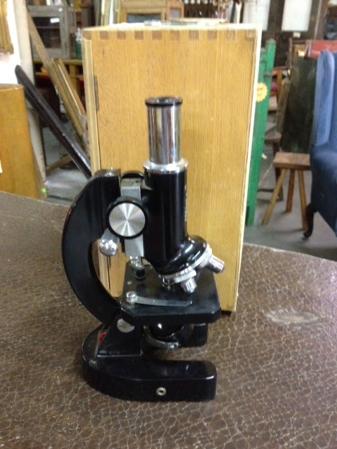 4. This little microscope is so cute. I didn't realize just how cute until I noticed the wooden box it comes with. I think it would make a lovely bookend on a shelf, or displayed along with other unusual knick knacks. Dealer #03, Vintage Microscope, $48.